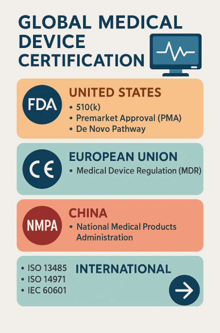 의료기기 산업은 기술 발전과 함께 빠르게 성장하고 있지만, 각국의 인증제도와 규제가 다양해 기업들이 혼란을 겪는 경우가 많습니다. 본 글에서는 의료기기 인증의 글로벌 동향, 주요 국가별 인증 기준, 그리고 성공적인 시장 진입을 위한 기업의 전략을 쉽게 풀어 설명합니다. 의료기기 산업에 종사하는 기업과 실무자들이 반드시 알아야 할 필수 정보를 제공합니다.